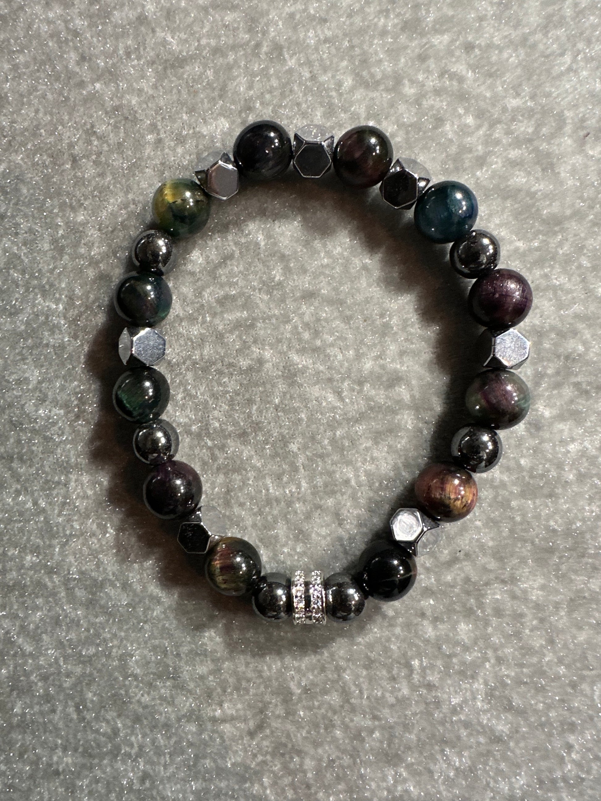 Multi color tiger eye/hematite bead bracelet with hematite spacers