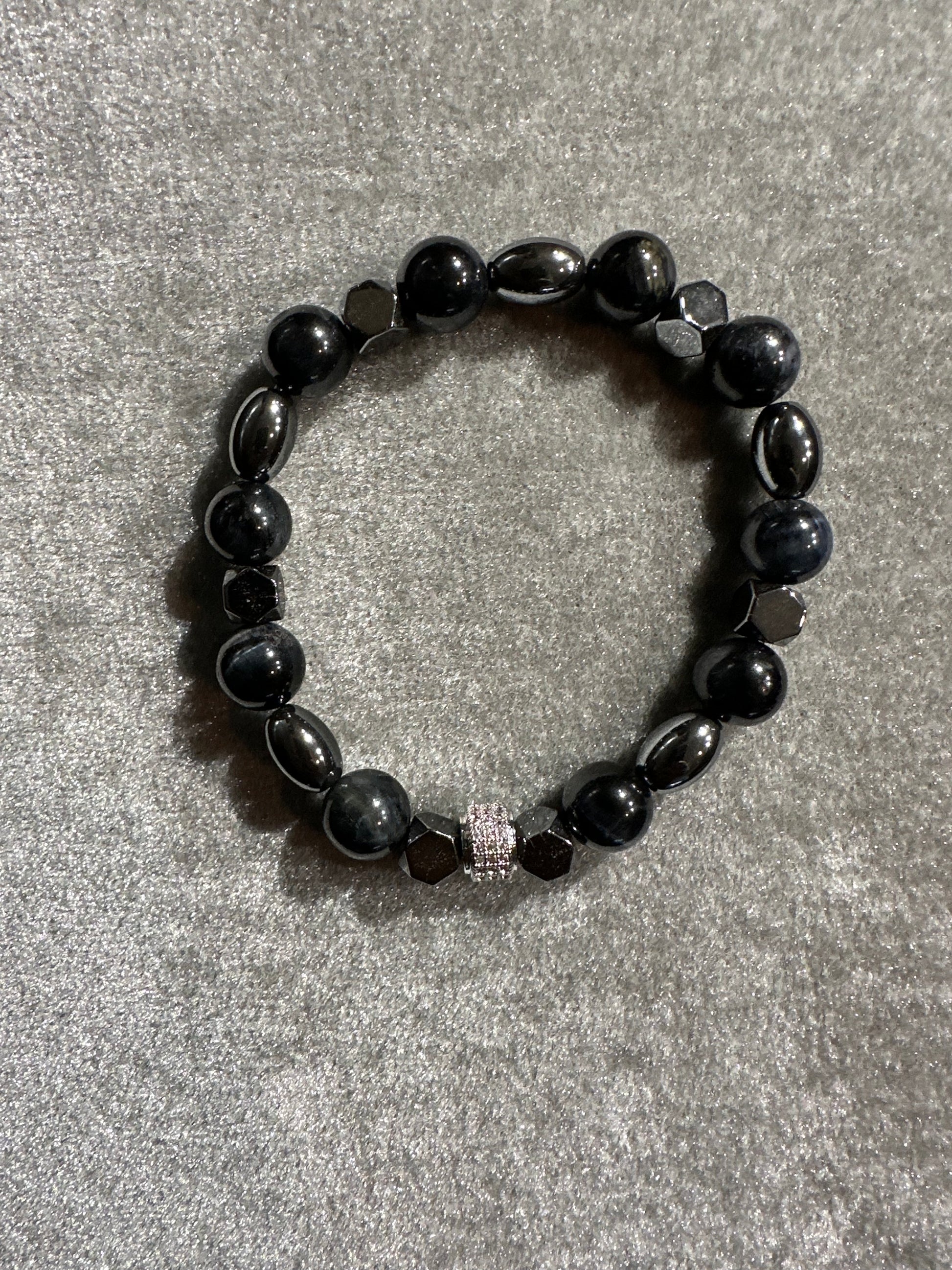 Black tiger eye/hematite bead bracelet with hematite spacers