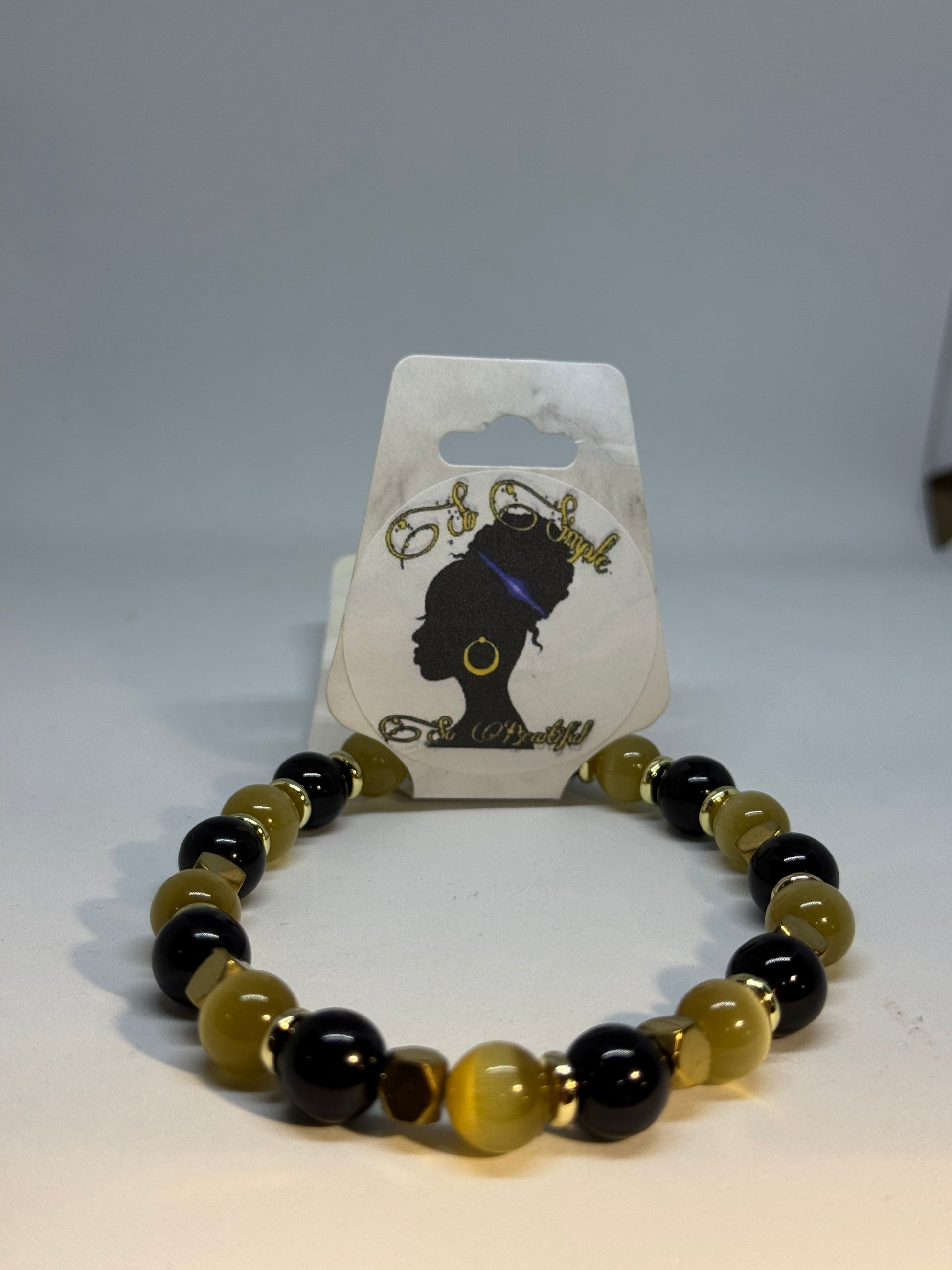 Divine 9 Alpha Onyx/gold cat eye/hematite bead bracelet