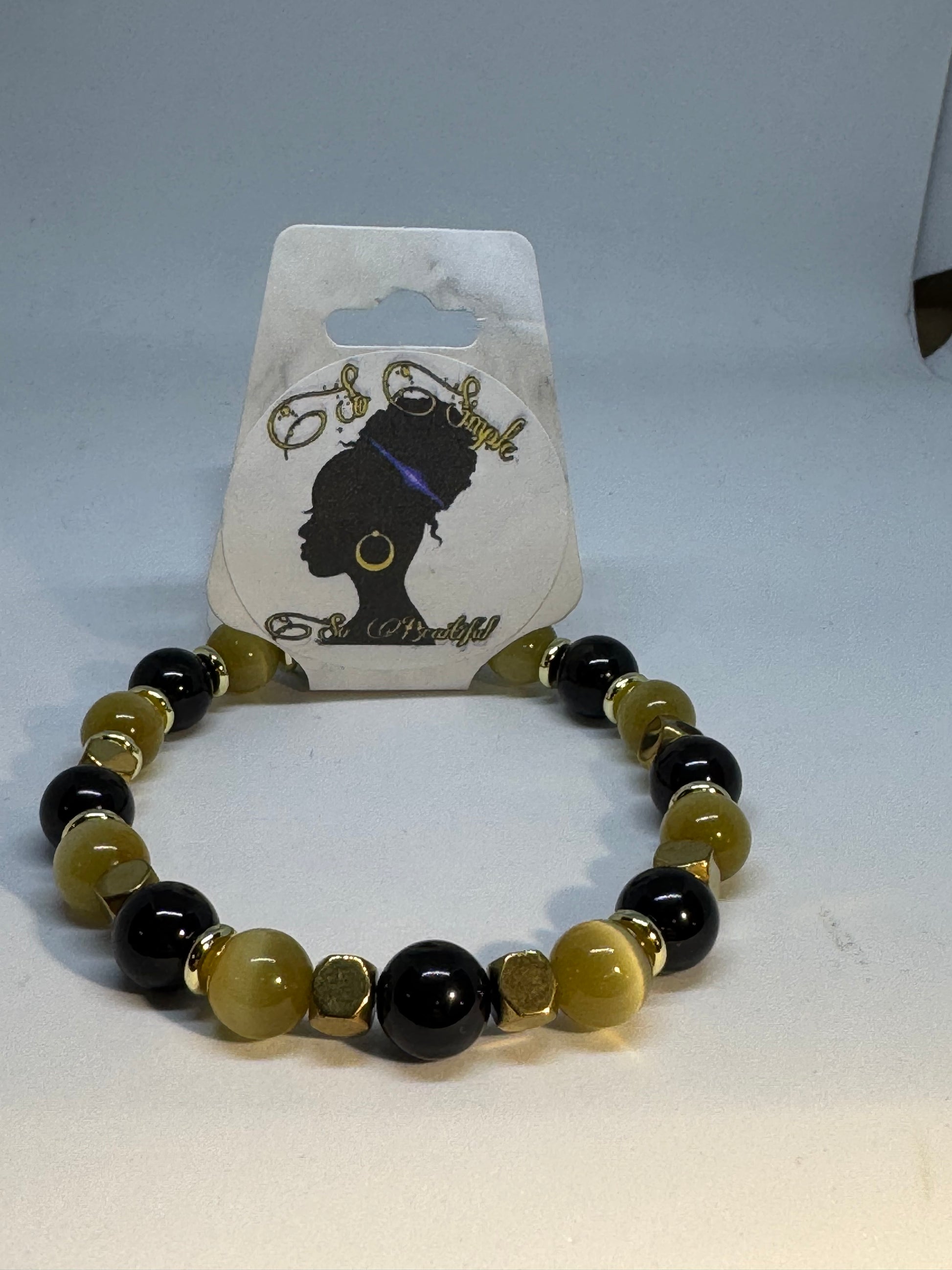Divine 9 Alpha Onyx/gold cat eye/hematite bead bracelet