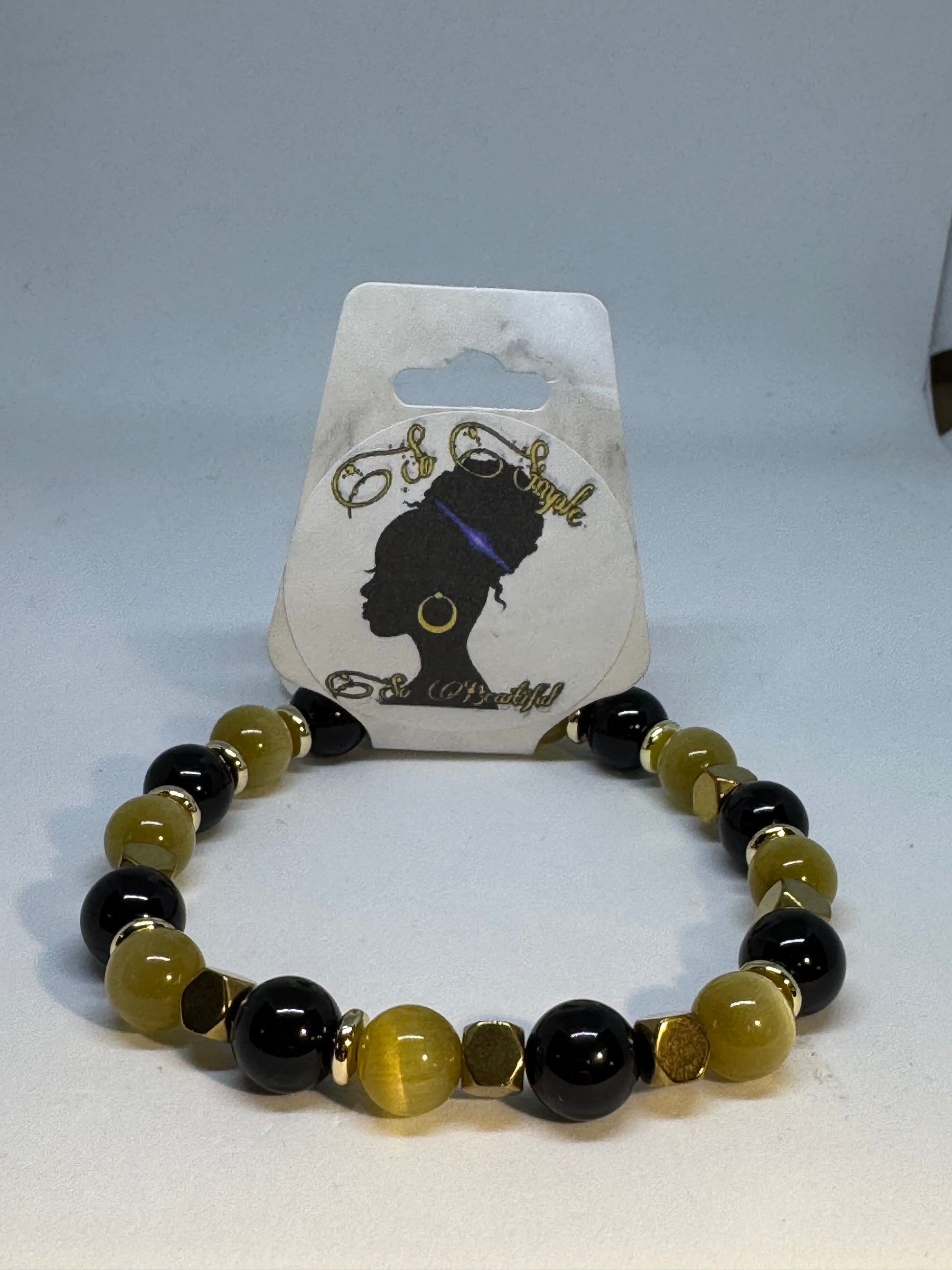 Divine 9 Alpha Onyx/gold cat eye/hematite bead bracelet