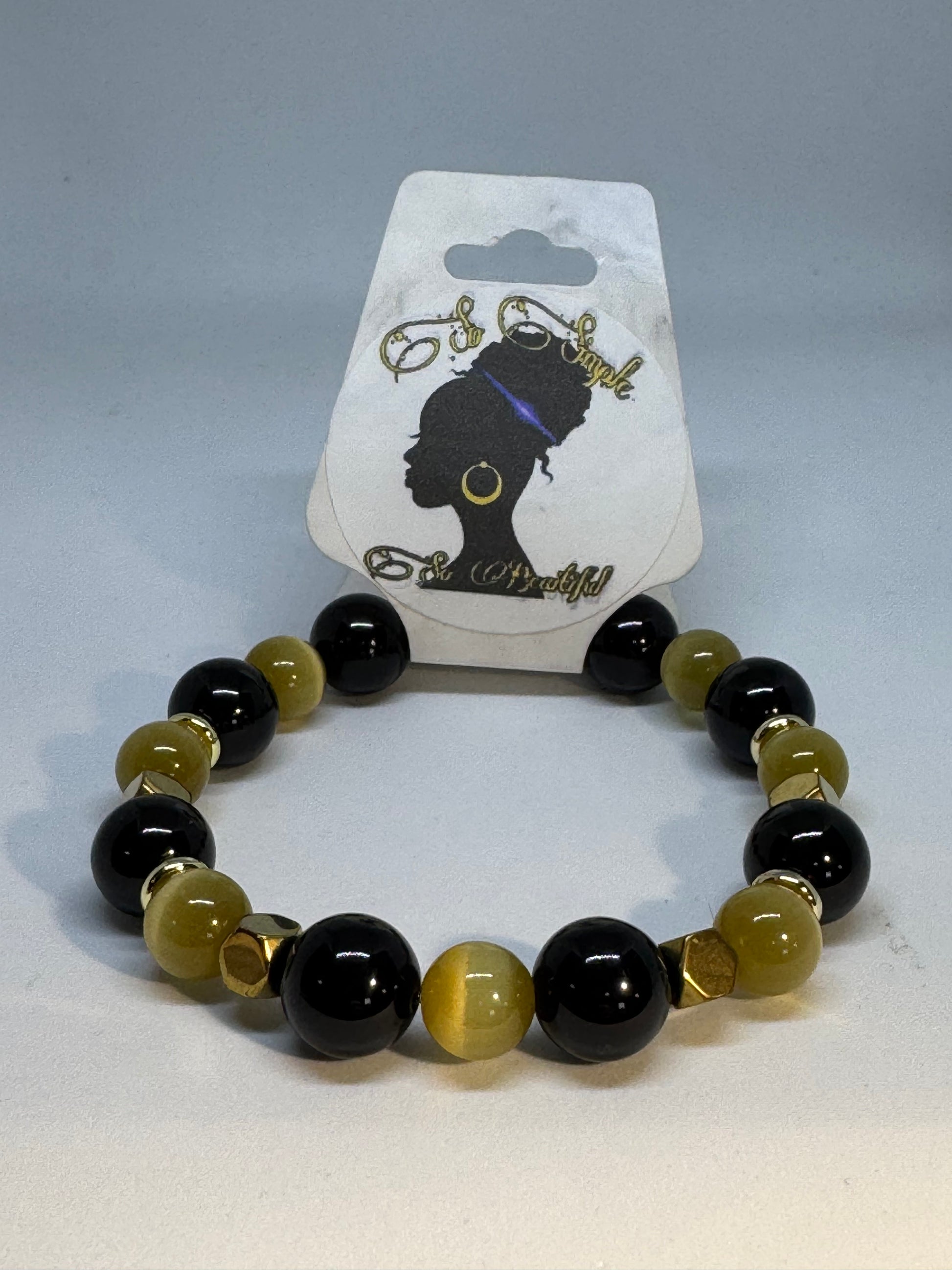 Divine 9 Alpha Onyx/gold cat eye/hematite bead bracelet