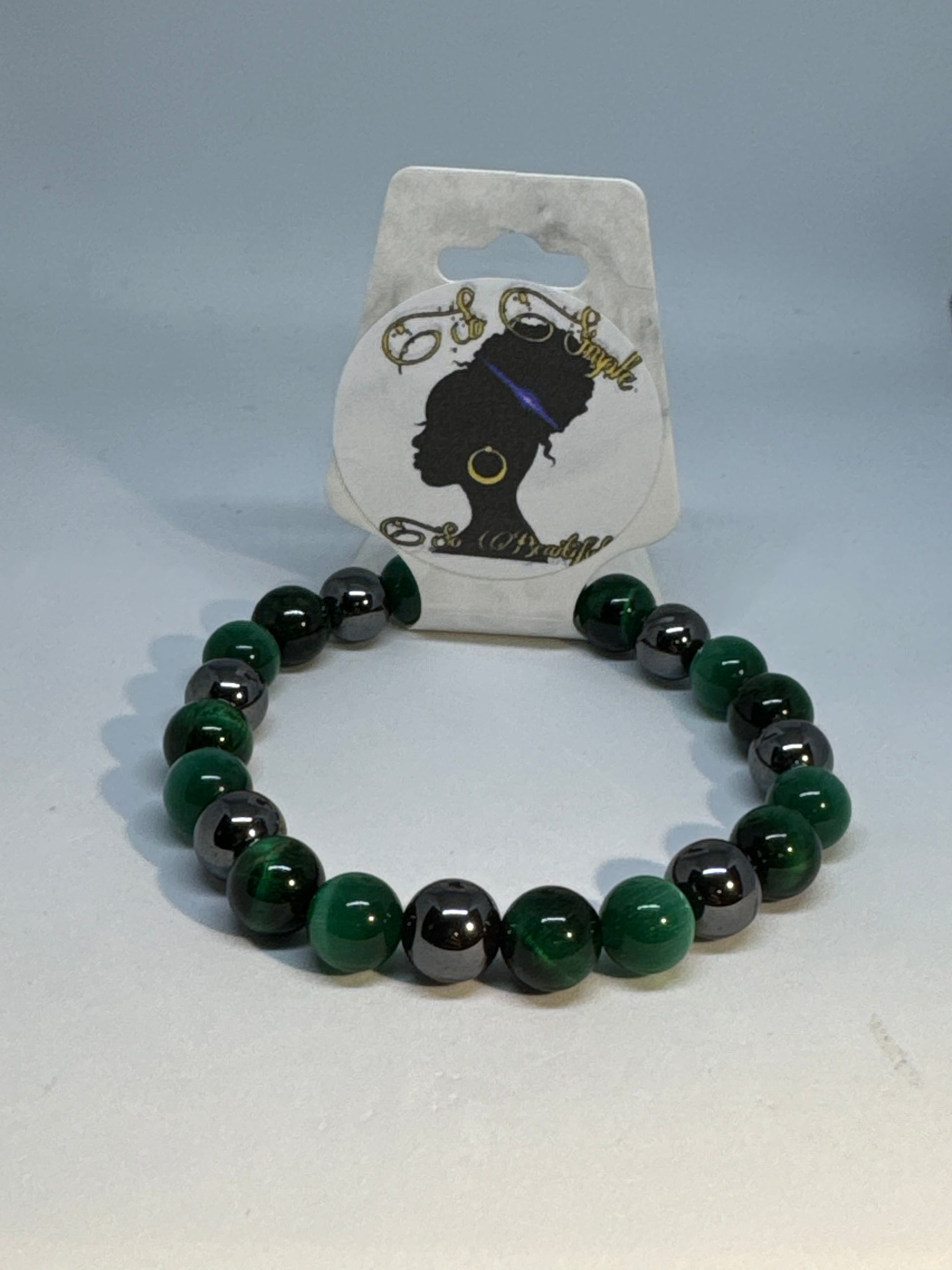 Green tiger eye/forest green cat eye/hematite bead bracelet