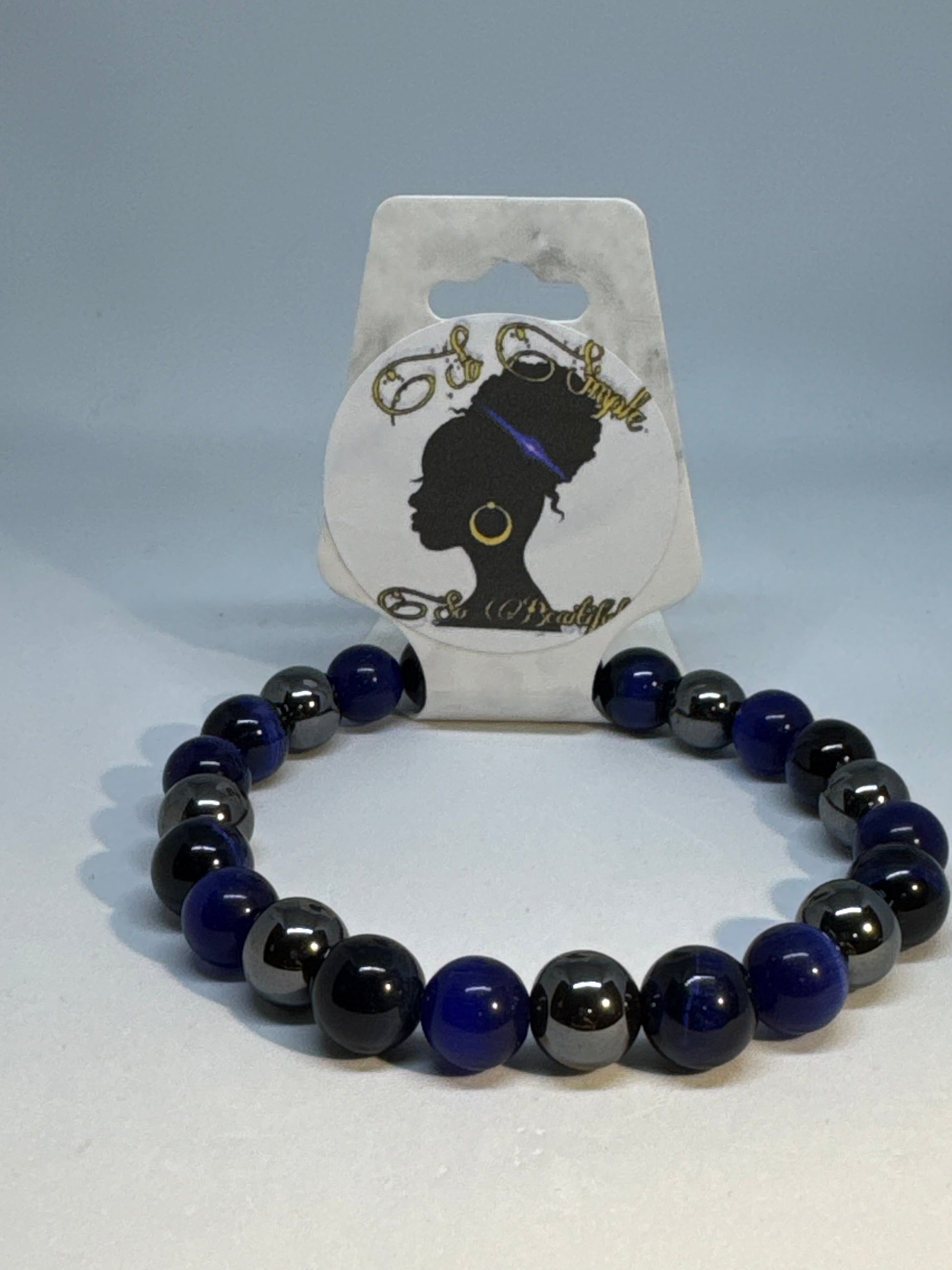Oxford blue tiger eye/royal blue cat eye/hematite bead bracelet