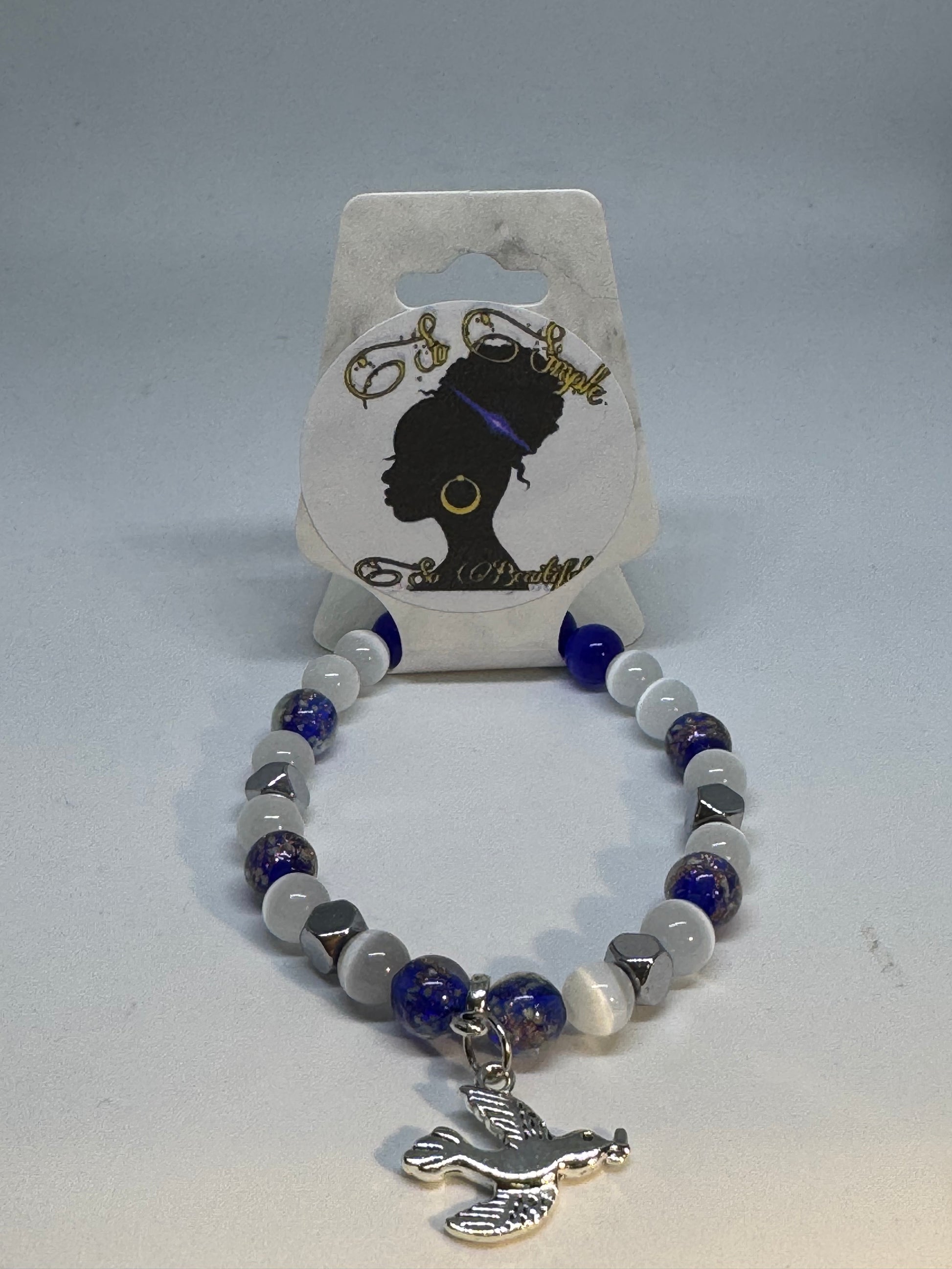 Divine 9 Zeta Royal blue/white cat eye/hematite/glow in the dark bead bracelet with dove charm