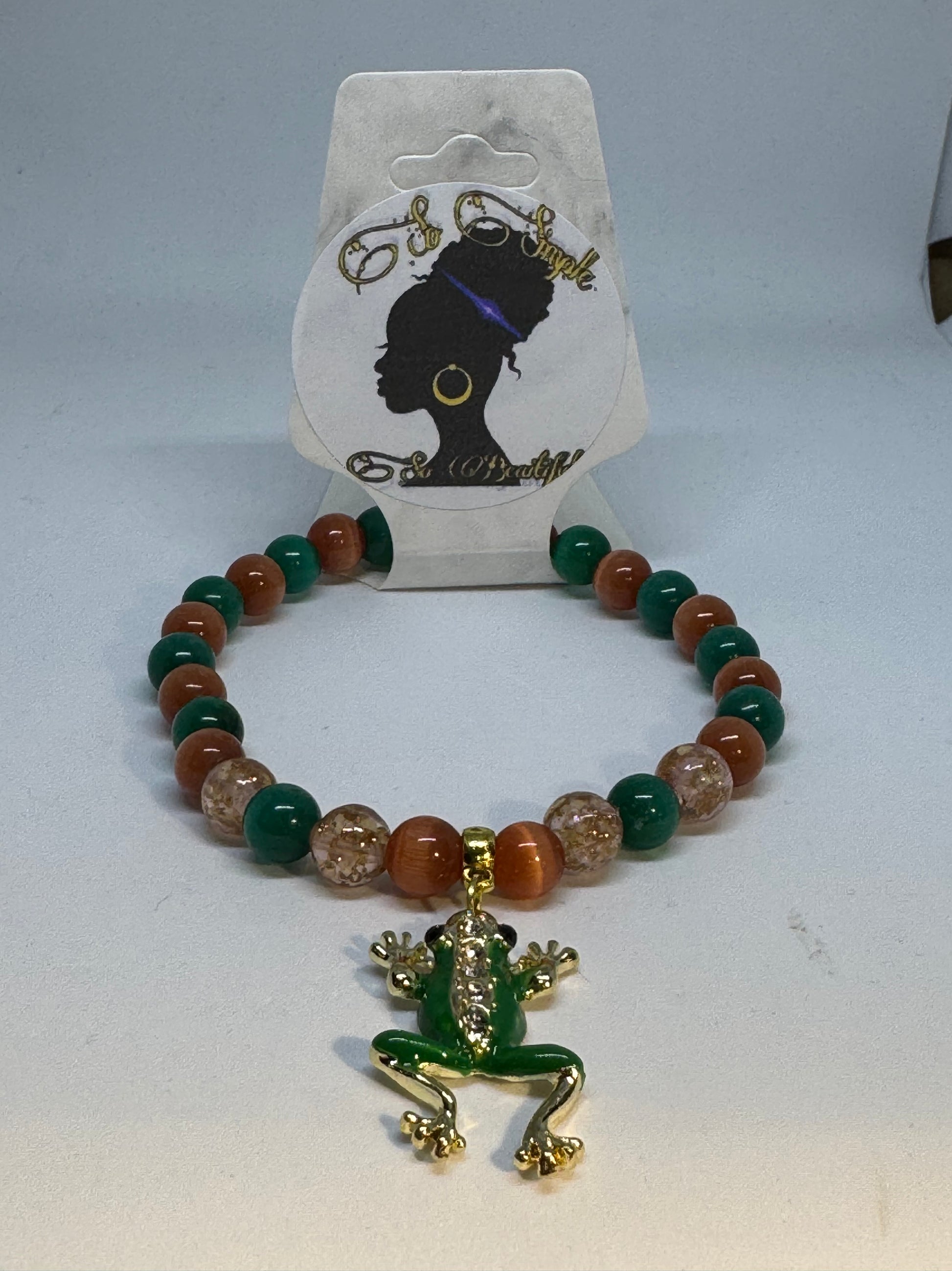 Bead bracelet with frog charm